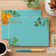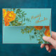 Orange & Aqua Wedding Modern Floral Envelope