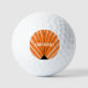 This art deco design golf ball is white and dimpled, with a diameter of at least 1.680 inches (42.67 mm) and a mass no more than 1.620 ounces (45.93 grams). The dimples on the surface are crucial for aerodynamics, reducing drag and allowing the ball to travel farther. Golf balls are designed with multiple layers to optimise distance, spin, and feel. Orange art deco design golf ball