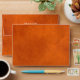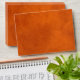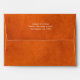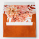 This fall wedding envelope showcases beautiful orange autumn flowers and foliage. The exterior presents a warm burnt orange coloured stained background. Inside, you'll find a lovely bouquet of dahlia flowers and leaves in vibrant orange and peach tones, capturing the essence of the autumn season.