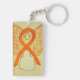 The guardian angel keychain features the art of a orange awareness ribbon angel painting. The orange awareness angel ribbon art keychain can be customised with personalised messages to make great cause keychains for fundraisers, awareness gifts, or other special events or occasions.