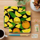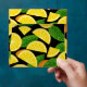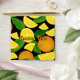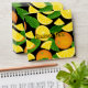 Orange slices and leaves. Seamless pattern. Custom background colour. Custom text.