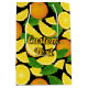 Orange slices and leaves. Seamless pattern. Custom background colour. Custom text on both sides.