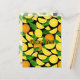 Orange slices and leaves. Seamless pattern. Custom background colour. Custom text.