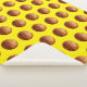 Pictured on golden yellow are orange basketballs in a pattern