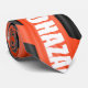 Humourous men's neck tie done in orange and black with graphics of a black Bio Hazard symbol and white bold lettering reading BioHazard. Customise to add any additional text to this fun tie.