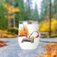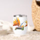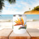 This trendy, stainless steel wine tumbler helps keep your drink chilled wherever you are and features the photo image of an orange bloom of the tropical Bird of Paradise Plant printed in a repeating pattern on a white background. Also referred to as a Crane Flower. A lovely, floral design!