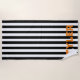 Add his name to create your own classic cabana striped beach towels in orange, black and white.