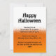 Orange black and white Halloween invitation. This product features a white ombre to orange front with black text and an orange ombre to black backing that can be swapped out for your own photo. Feel free to contact us, and be sure to customise this product with your event details.