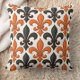 Orange Black Baroque Fleur-de-lis Pattern Design Cushion