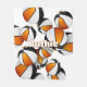 This fun basketball themed fleece blanket for a kid's basketball-themed room can be personalised with the athlete's name atop the image of a cluster of varied size basketballs that have alternating orange, white and black panels - by katz_d_zynes
