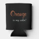 Great can cooler with a design noting your colour so you know which can is yours! The background is black. Text for the saying is "Orange is my colour!" in a nice typography mix of orange and white. Check out our other "my colour" can coolers also!