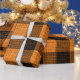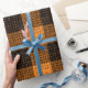 Orange Black Crosshatch Buffalo Check Wrapping Paper