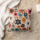 Orange Black Flowers Pattern Beige Background Cushion
