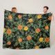 Orange & Black Gothic Peony & Rose Floral Wedding Fleece Blanket