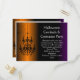Sophisticated yet scary image of an elegant chandelier silhouette against a glowing orange background, with a spider web in the corner. Find the spider on the chandelier. Black and dark purple background set it all off. Customise it for your halloween party or just to celebrate. All images © 2012 CustomInvitesOnline.com