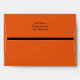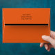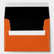 Great all purpose custom Halloween envelope, with a solid black inside and pumpkin orange colour, on the outside of the envelope, with a black stripe on the edge of the back flap. Black text return address is done on the back flap of the envelope and is ready to personalise with your own information. Chose the size envelope you need per the size of your invitation or card. Add a colourful finishing touch to any Halloween invitations or greeting card.