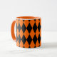 Orange Black Harlequin Diamonds Checkers Design Mug