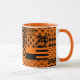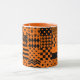 Orange and Black Mixed Patterns Patchwork Design of 16 Different Design illustration of Fleur-de-lis, crowns, hearts, Polka Dots, Greek key, irregular Abstract, Houndstooth, Trees, Harlequin, Stripes, Check, umbrella, anchor, Chevron, blob and flower floral illustration Designs.