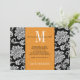 Orange Black Monogram Damask Wedding Save The Date Invitation