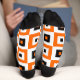 Orange Black White Checkered Squares Pattern Socks