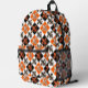 Orange Black White Chequered Fleur-de-lis Design Printed Backpack