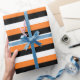 Orange, Black, White Stripes Wrapping Paper