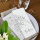 Modern simple sketched drawing wedding monotone menu. Perfect for a simple modern orange blossom wedding. Personalise this orange blossom wedding invite design with your own four course menu details. Other matching items available. Orange blossom botanical drawing hand art by Sarah Trett for www.mylittleedenweddings.com
