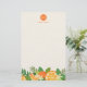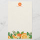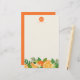 A cheerful orange floral illustration. The design can be personalised with your own message or name.The illustration includes hand-drawn images of oranges, slices, flower blossoms and leaves in bright colours including orange, yellow, green and cream.