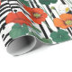 This eye-catching wrapping paper features vibrant orange, blue, and white flowers set against chic black-and-white stripes and playful polka dots—perfect for making your gifts pop with personality and charm.