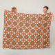 Orange, blue and white geometric mandala fleece blanket