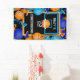 Orange and blue basketballs with paint splatter and a neon border pop against a black background in this fun and unique basketball birthday design complete with sneakers inspired by current trends. Personalise this banner by simply clicking “personalise this template.” Make sure you bounce on over to EmmyINK’s Orange & Blue Basketball Paint Splatter Birthday collection for perfectly coordinating party supplies and decor!