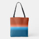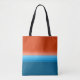 Orange and blue complementary colour ombre striped tote bag for women. Enjoy the retro rainbow vibes colour gradient fading from dark orange to deep blue.