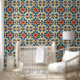 Orange Blue Italian Tile Wallpaper