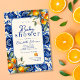 Celebrate the mummy-to-be with these vintage Mediterranean blue tiles and oranges inspired stylish invitations. This Vintage Blue tile and oranges, little cutie Baby Shower Invitation can be customised with your own details. The design features a vintage blue tile background with realistic oranges artwork.