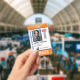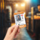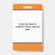 Vertical press ID with black and orange as accent colours. Add photo, logo, name, title, ID number and more.