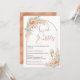 Faux rose gold modern calligraphy lunch and bubbly bridal shower invitation in a bohemian style featuring a lovely orange flowering cactus arrangement, pampas grass and a faux rose gold arch.