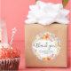 Add a sweet touch to your bridal shower favours with this beautiful hand-painted boho floral watercolor thank you sticker. Featuring a vibrant border of pastel flowers in shades of orange, purple, and blue, this sticker adds a cheerful and elegant accent to any gift or envelope. The elegant script "Thank You" text and personalised details make it a perfect keepsake for guests. Ideal for spring or summer bridal showers, this sticker complements boho or floral-themed decor with its whimsical and romantic charm.