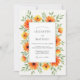 This vibrant design features hand-painted watercolor florals in a bright palette of orange, yellow, and tangerine. Lush poppies and delicate greenery are arranged to create a cheerful and airy aesthetic. Perfect for a sunny seasonal event, the artwork showcases botanical elegance with a focus on warm, radiant tones and organic textures.