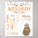 Orange & Brown Sloth Baby Birth Stats Poster
