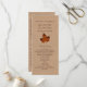 On a burlap coloured background, a large, monogrammed orange maple leaf accents this wedding program.