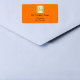 Orange coloured background. Personalise and add your company name, address and business logo. Black text.