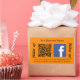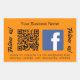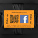 An orange coloured background. Personalise and add your business name, your own qr code to your Facebook account and a text. Black text. With the text x2: Follow us!