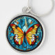 On this unique keychain is the image of a beautiful orange and gold butterfly against a stained glass style background. The background and border are in tones of blue. Elegant, bright, and colourful! Be sure to see the matching earrings and necklace in our store.