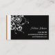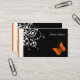 Business card with a striking black, white and orange design - featuring an orange butterfly against a black background with pretty white floral swirls. The card has an orange and white line down the side. The text and fonts on the front and back of the card can be easily changed. The text is in white, but this can also be changed to reflect your own style. sgb01