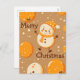 A cute Christmas-themed pattern in a cartoon drawing style with a snowman. In orange pastel shades.