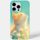 An orange cat gazes up towards the sky while surrounded by blooming daisies in a bright, sunlit meadow. Soft pastel colours and delicate lighting create a dreamy, serene atmosphere.