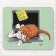 Orange tabby cat on a laptop computer holding the laptop hostage in a post-it-note ransom note for attention
