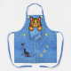 This fun novelty apron includes a faux (printed) denim / blue jean look and includes a cartoon orange kitty cat that appears as if it's sitting inside a pocket! The design also includes "patches" (printed) that resemble the silhouettes of a cat chasing a bird and three paw prints. Use the easy template to add your name or your cat's name to the design (or simply delete the sample name "Tabitha" to order without a name). These cute aprons make the perfect gift for any cat owner! They would also be fun for an animal groomer or vet.