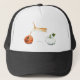 Orange Cat Jumping Between Pumpkins Trucker Hat