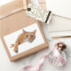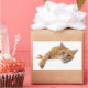 Portrait of an orange tabby cat domestic shorthair laying down on a white background with paw draped over a table